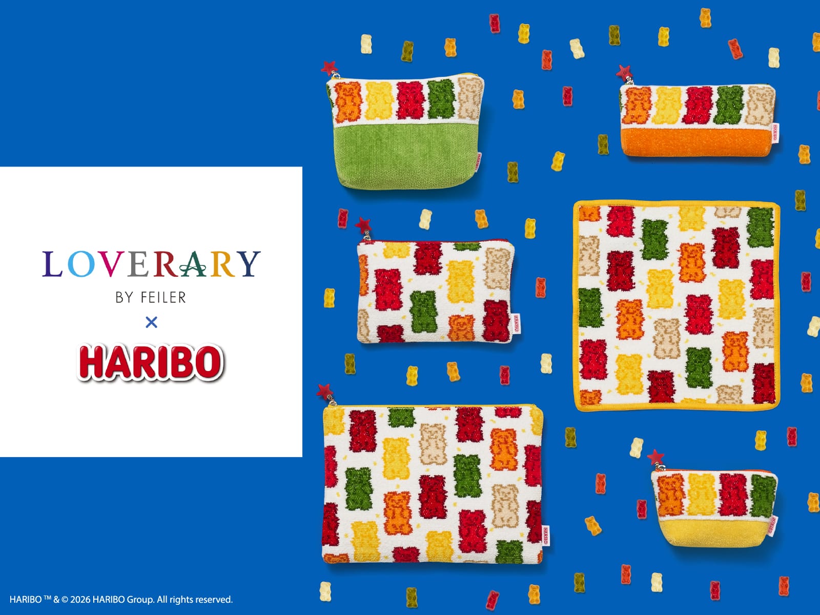 2026年1月29日(木)12:00~2月2日(月)16:59に、ドイツ生まれの世界的なグミキャンディブランド「HARIBO(ハリボー)」とドイツ伝統工芸織物シュニール織のブランド「FEILER(フェイラー)」のギフトコンセプトショップ「LOVERARY BY FEILER(ラブラリー バイ フェイラー)」が初コラボレーションした商品を、フェイラー銀座本店、フェイラー天神地下街店、髙島屋大阪店フェイラーショップ、全国14店舗のラブラリー バイ フェイラーショップ(