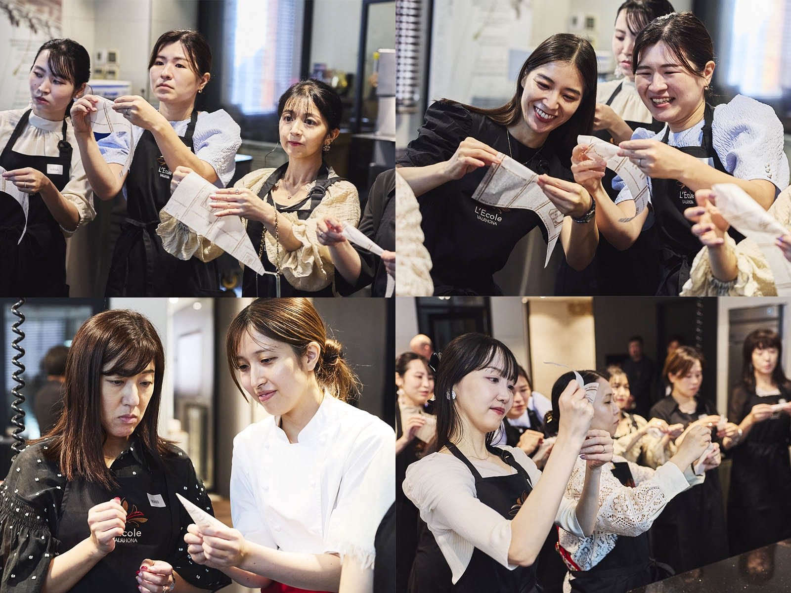 「非常にクオリティの高いショコラ作りを体験させていただき、また発売前の商品を見ることができて、とても楽しかったです」「プロの技を間近で見られて、また実践できて、面白かったです」「フェイラーファンの皆さんと楽しくものづくりができて、有意義な時間となりました」「このデザインのハンカチを使用するたびに、今日の時間を思い返せることがうれしいです」