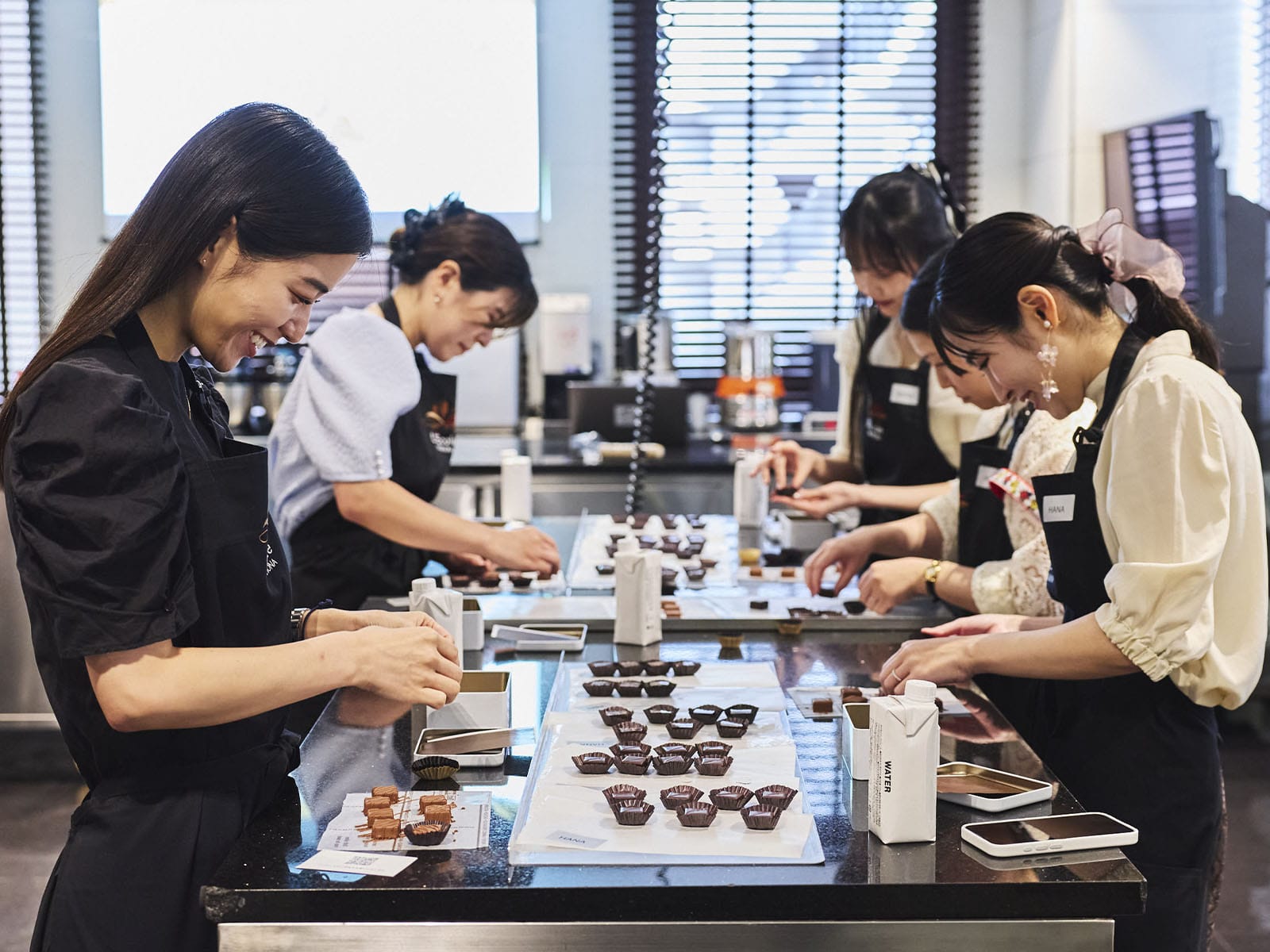 フェイラーと触れ合うときのように「心はいつだって踊れる。」時間を共有したいとの想いから開催している#フェイラーワークショップ。第14弾は、新作『コフレドゥショコラ』の発売にあたり、ショコラの専門技術校「エコール・ヴァローナ 東京」のシェフパティシエを講師にお迎えして、本格的なショコラ作りを体験いただきました。今回はフェイラーファンの皆さん計20名にご参加いただいたワークショップの様子をご紹介します。