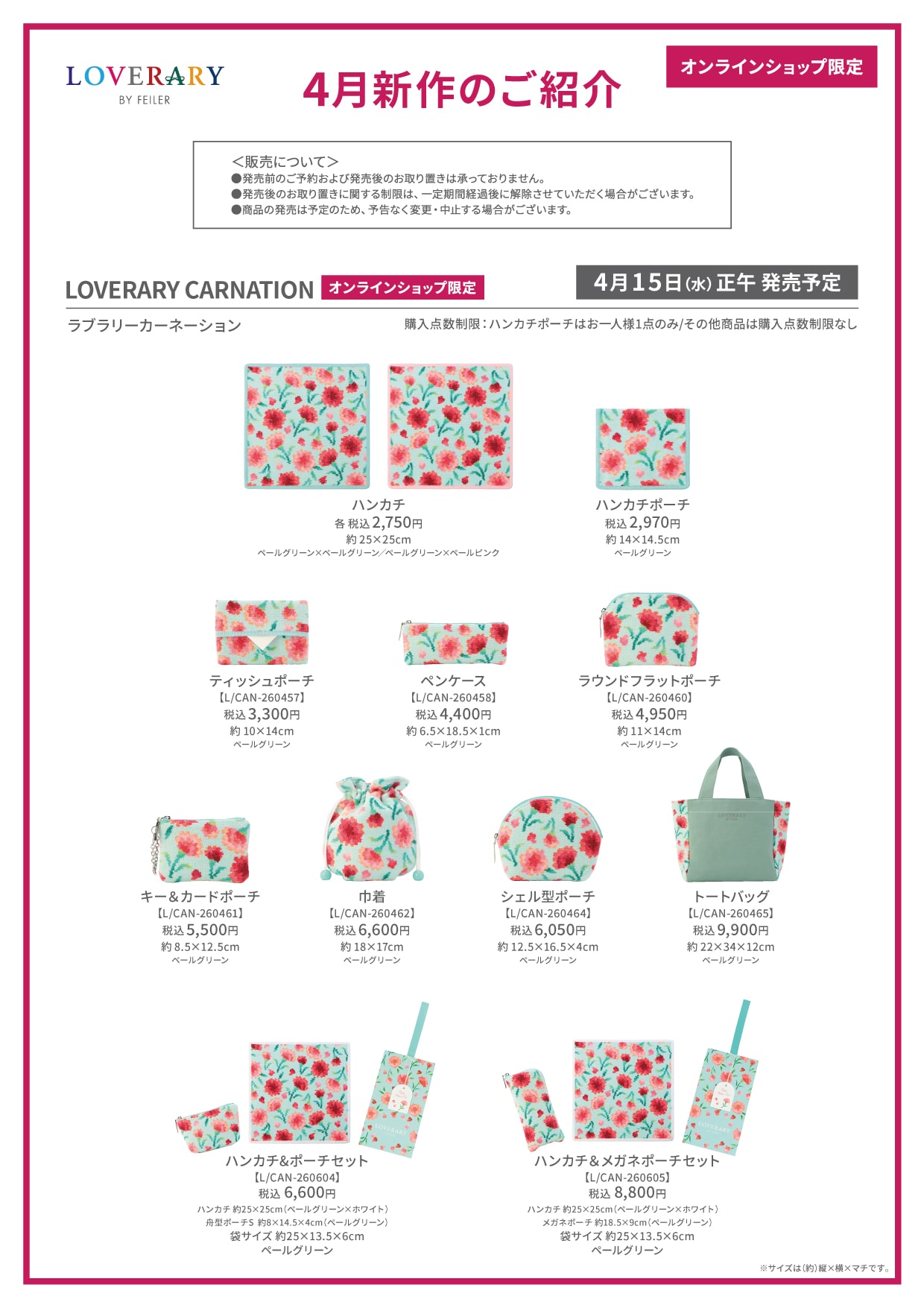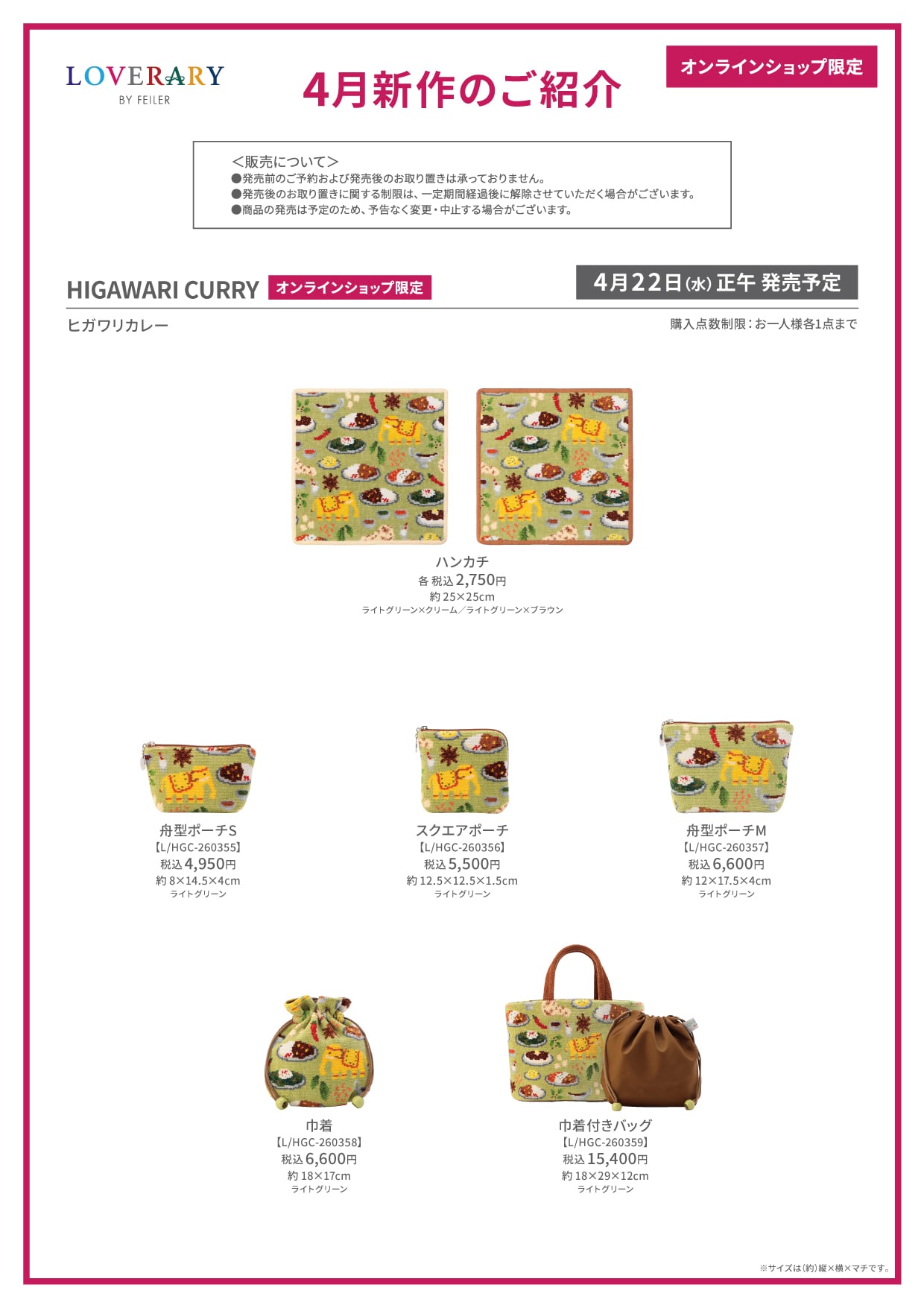 フェイラー公式オンラインショップでは、各発売日の正午に販売開始予定です。