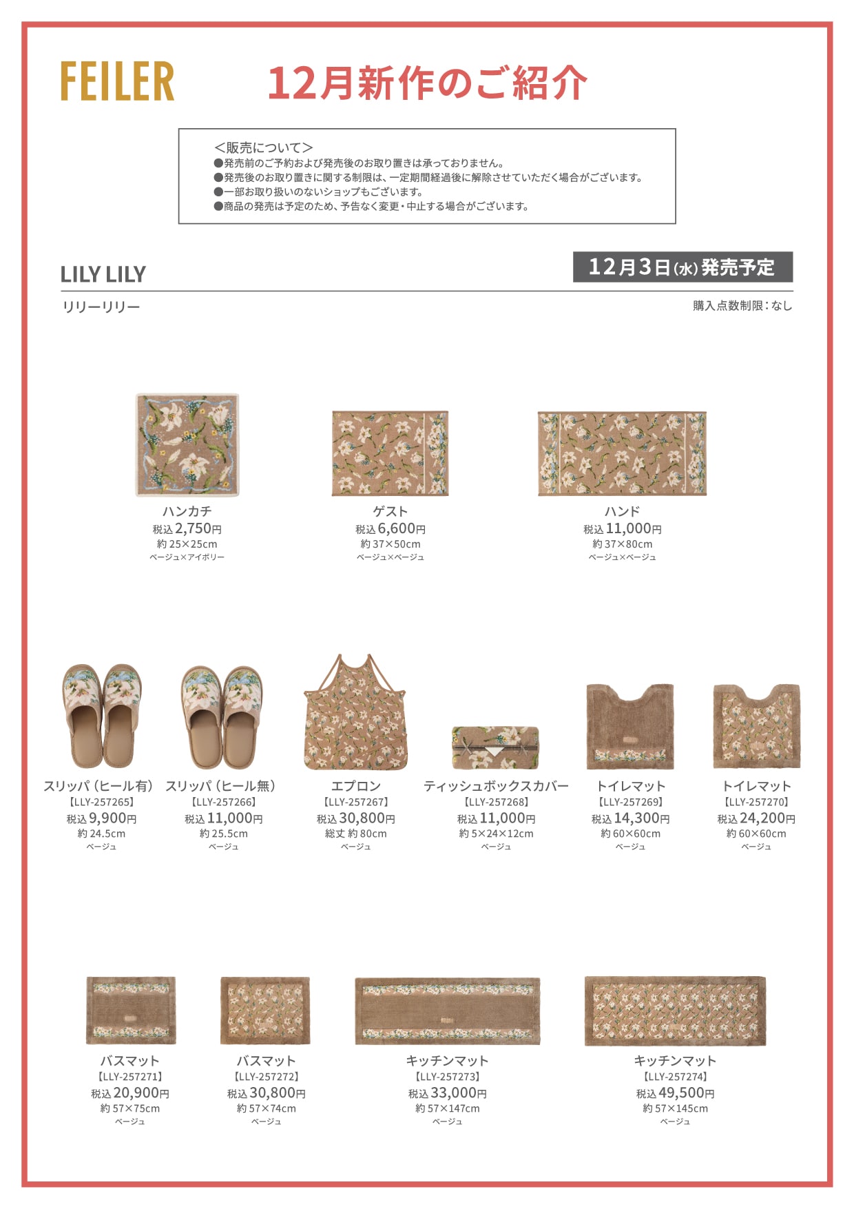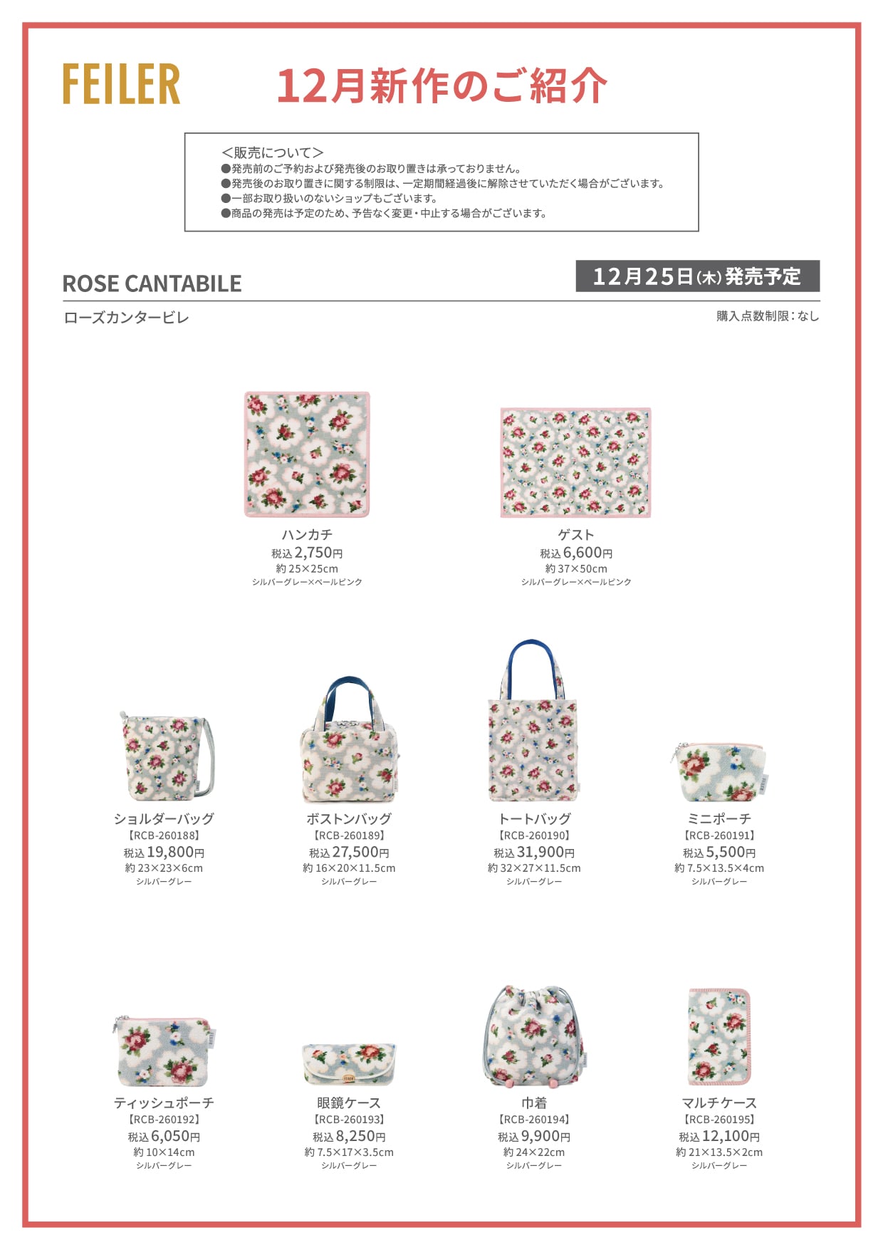 フェイラーの2025年12月発売予定の新作をご紹介いたします。