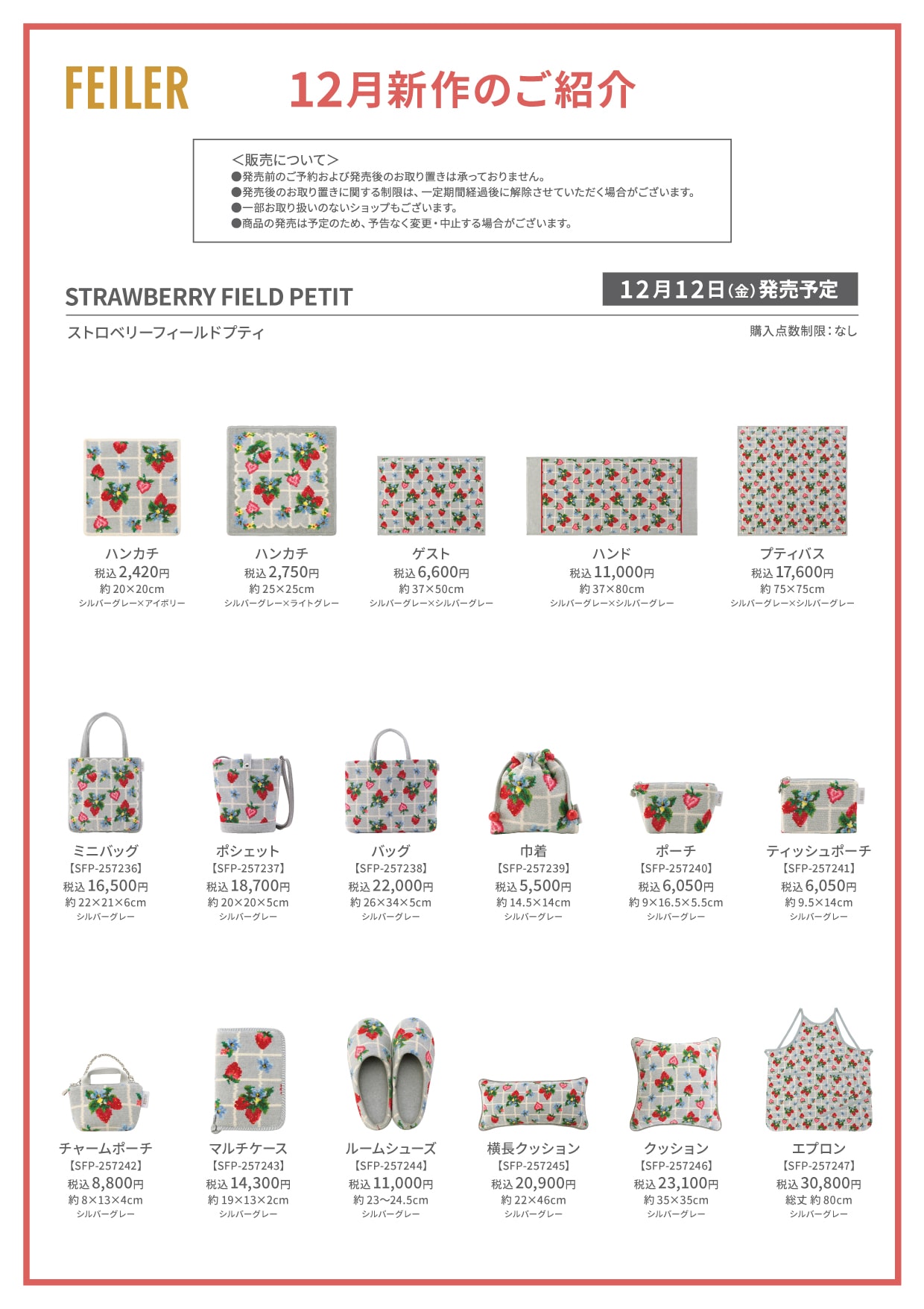 また、人気の『ストロベリーフィールドプティ』の新色グレーとインテリアアイテムの新作もご紹介いたします。